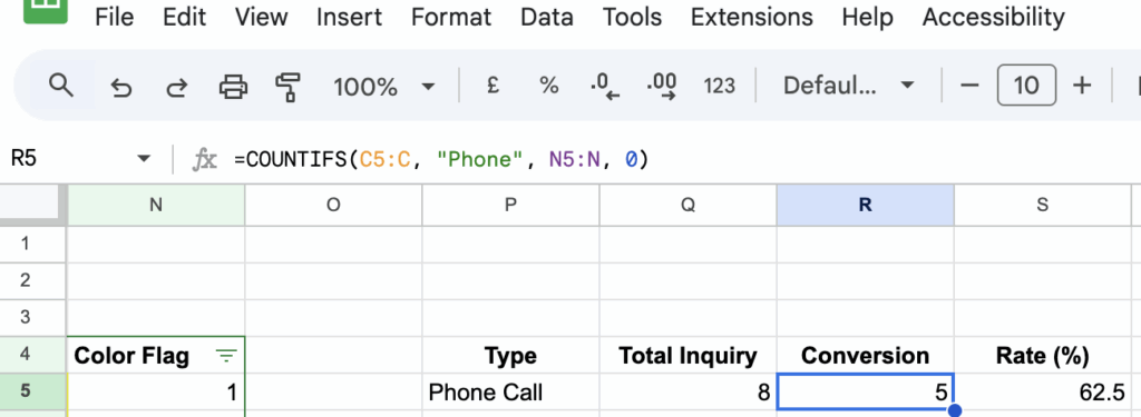=COUNTIFS(C5:C, “Phone”, N5:N, 0)